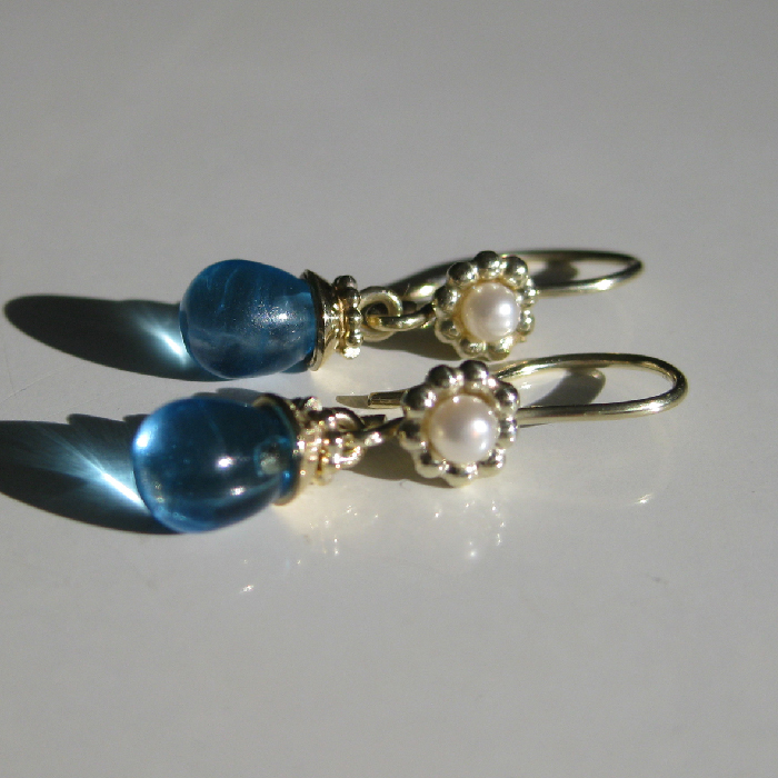 Pareldraad, goud, parel & topaas