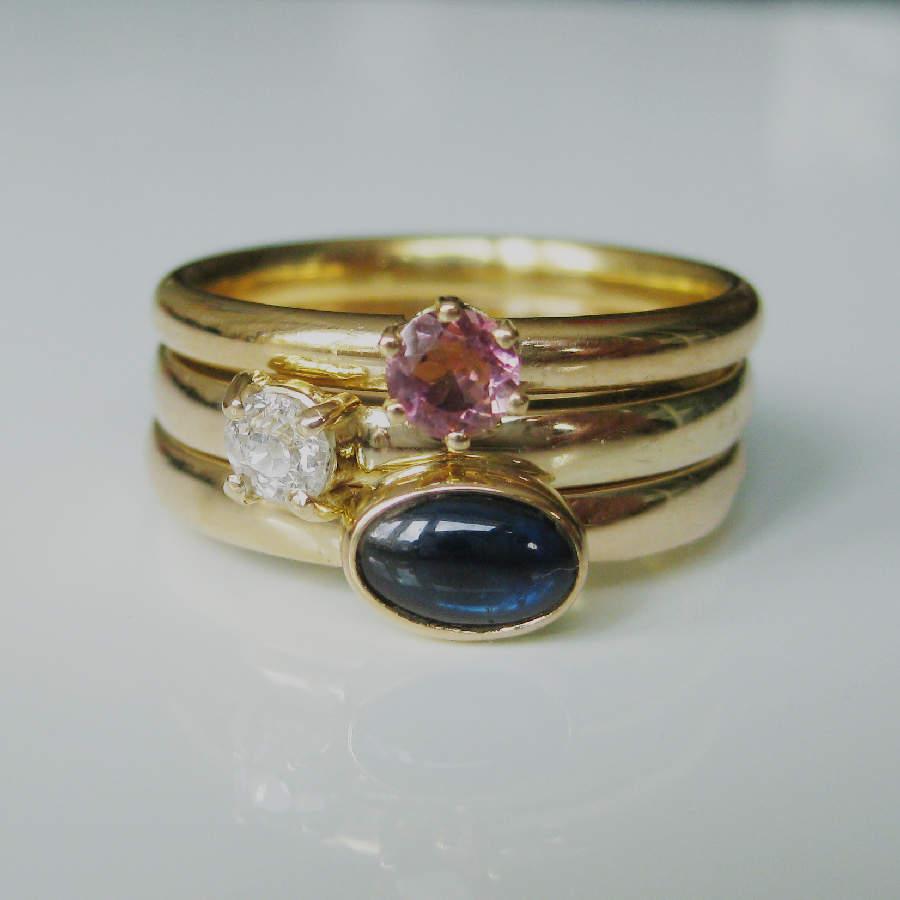 Aanschuif ringen Saffier, Diamant en Toermalijn