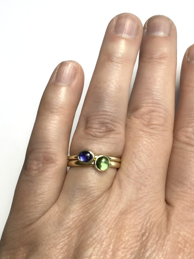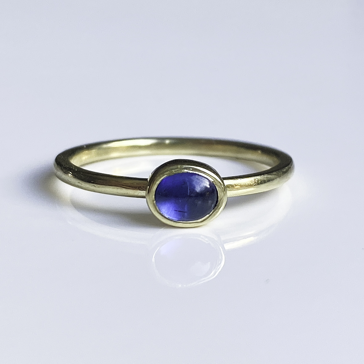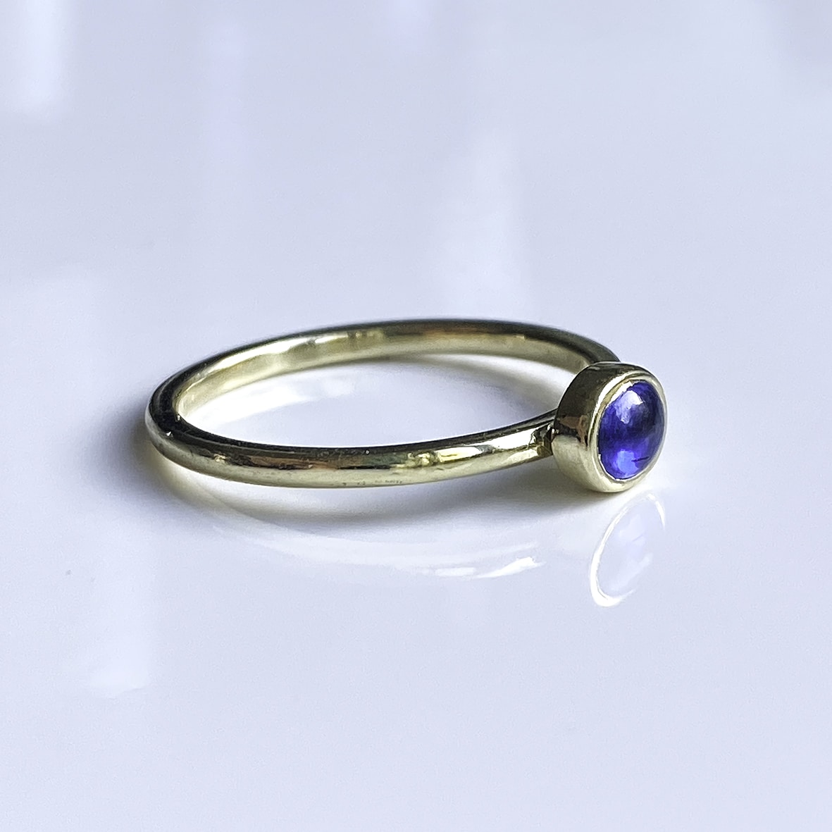Een mooi klein ringetje gemaakt van 14 karaat geelgoud en blauwe Kyaniet. Een minder bekende steensoort, maar dat is niet terecht. De blauwe kleur is prachtig en vergelijkbaar met Saffier.