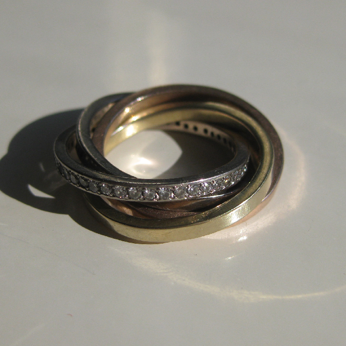 4 losse ringen in elkaar met diamant