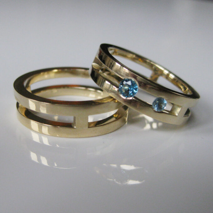 Trouwringen dubbele baan en Topaas