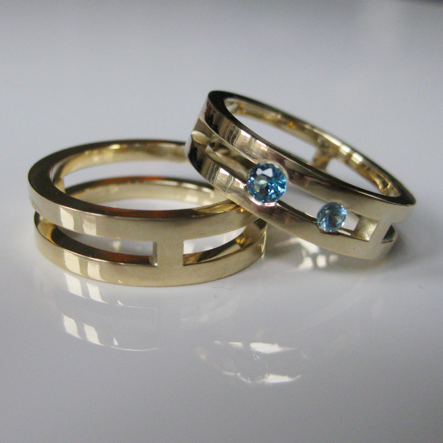 Het is ook mogelijk om de ringen in een andere kleur goud te bestellen en met andere stenen. Bijvoorbeeld diamant.